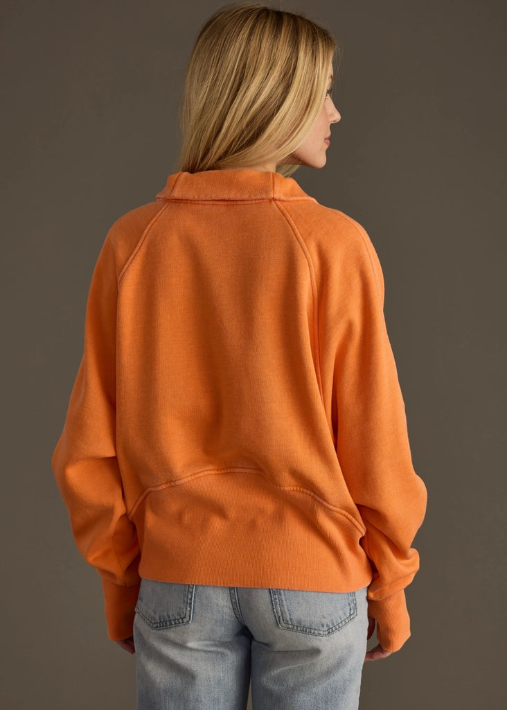 Orange quarter zip sweatshirt. Fan Favorite style. Ribbed back to give definition around your waist without being tight. You are going to love this quality sweatshirt!