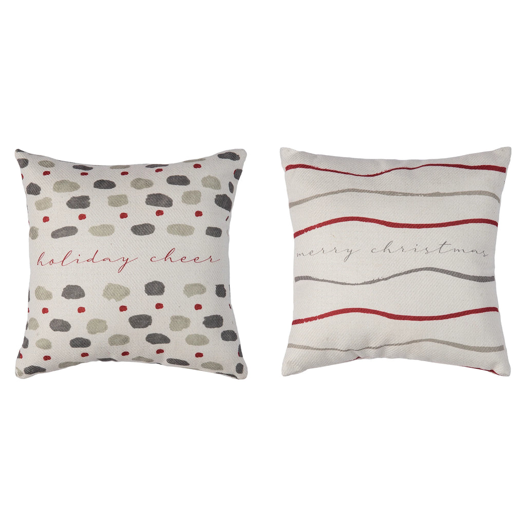Fabric pillow holiday prints 2 assorted designs. Sold each. Dimensions: x x