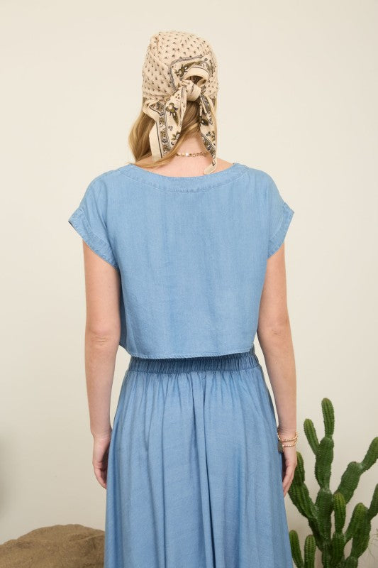 Chambray boat neck boxy crop top