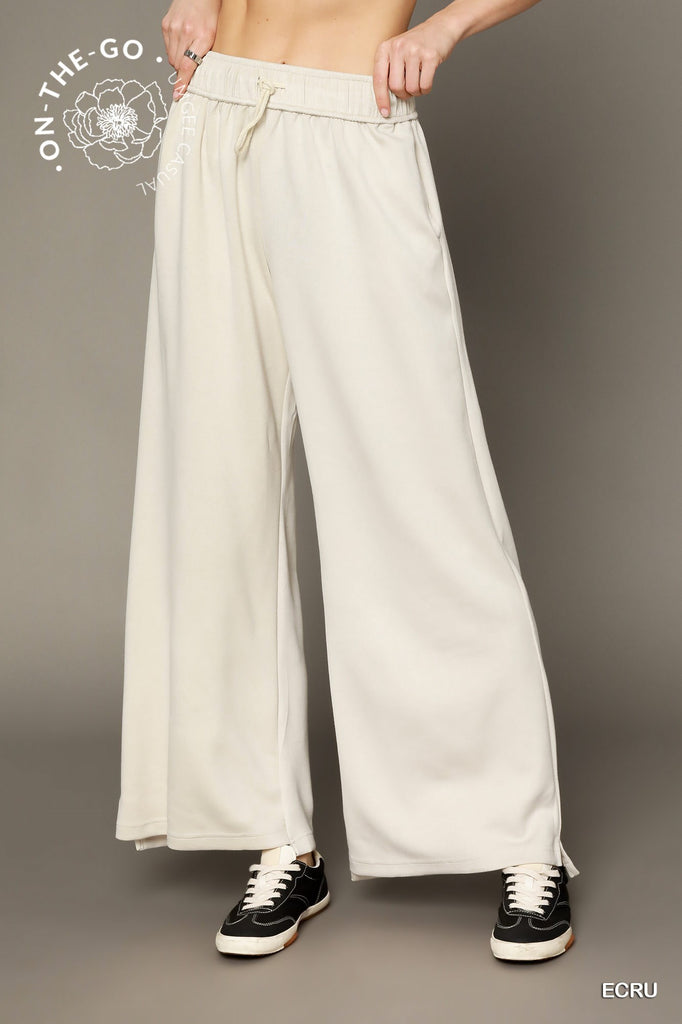 Ecru on-the go lux wide leg pants - super soft! Fan favoriate