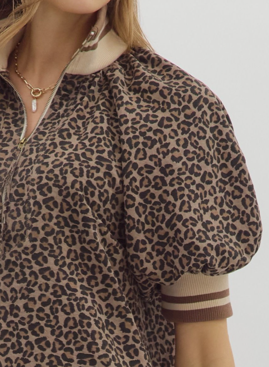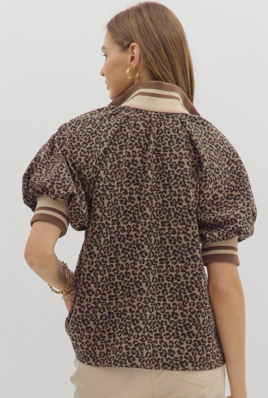 Mocha Leopard Pattern Puff Sleeve
