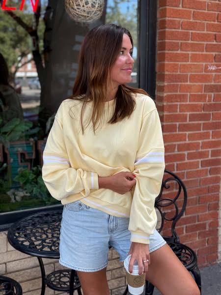 Sunny stripe sweatshirt. SUNNY Stripe Sweatshirt – Butter Yellow Trend for the WIN!