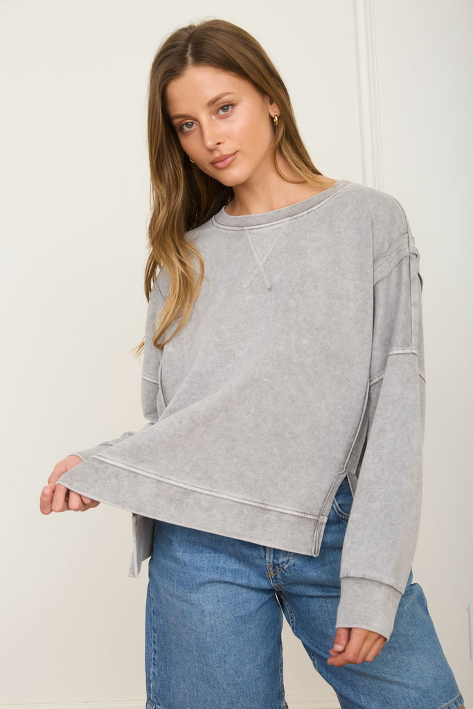 Washed Extended Shoulder Knit Top