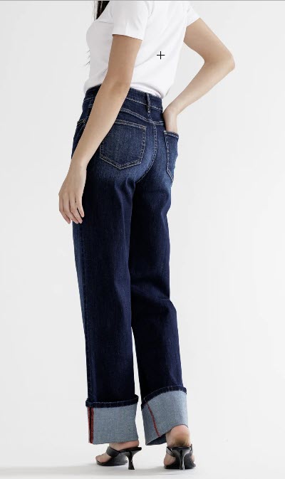 Mica wide leg with cuff hem - high rise fabric: 90.5% cotton, 7% poly, 2.5% span measurement: front rise: 10 3/4" inseam (cuffed/uncuffed): 31"/36" leg opening (uncuffed): 20"
